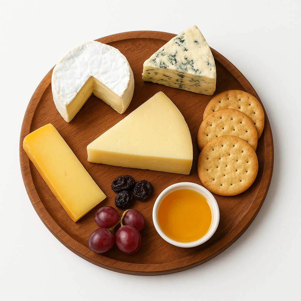 盛り付けは見た目の色味が重視され、食べやすい大きさにカットされたチーズが並ぶのが一般的です。さまざまな風味のチーズを組み合わせ、食感の違いを楽しむ構成が多いです。