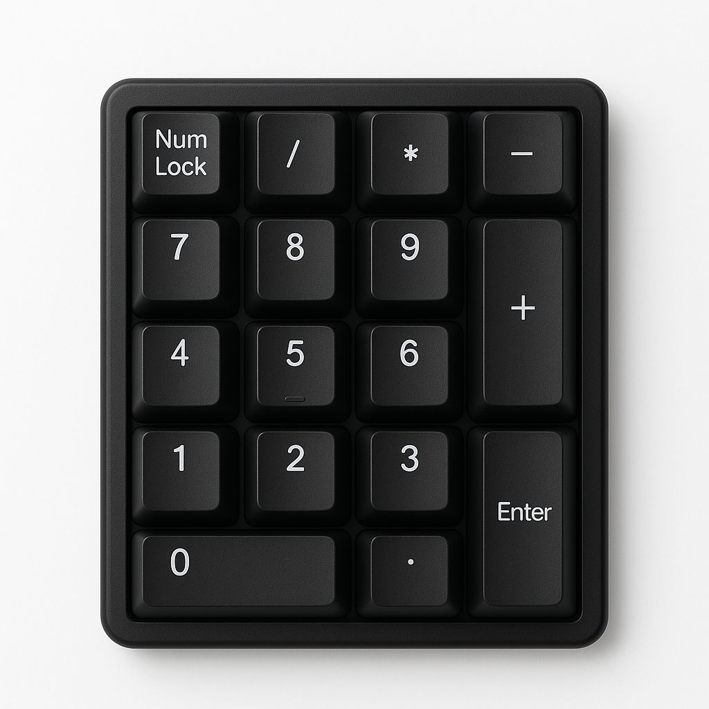 テンキー/ナンバーパッド/ナンバキー/数字キー/数値入力パッド/キーパッド/数字部/テンキー付きキーボード/パッド式数字入力/小型キーボードの数字部/右手側数字キー/PC入力用数字部/会計用入力部/数値入力専用部/スプレッドシート用入力部/データ入力用キー群/キーボードの数字列/テンキー領域/数字入力部