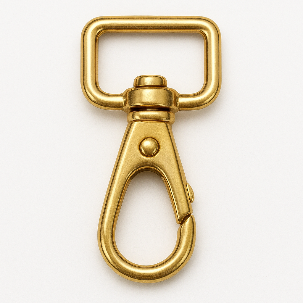 ナスカンは、開閉機構を持つ金具の一種です。金属製で、片端に開閉部があり、もう一方には固定して使える部分があります。日常の結束作業やアウトドアで、素早く連結・解放する用途に用いられます。