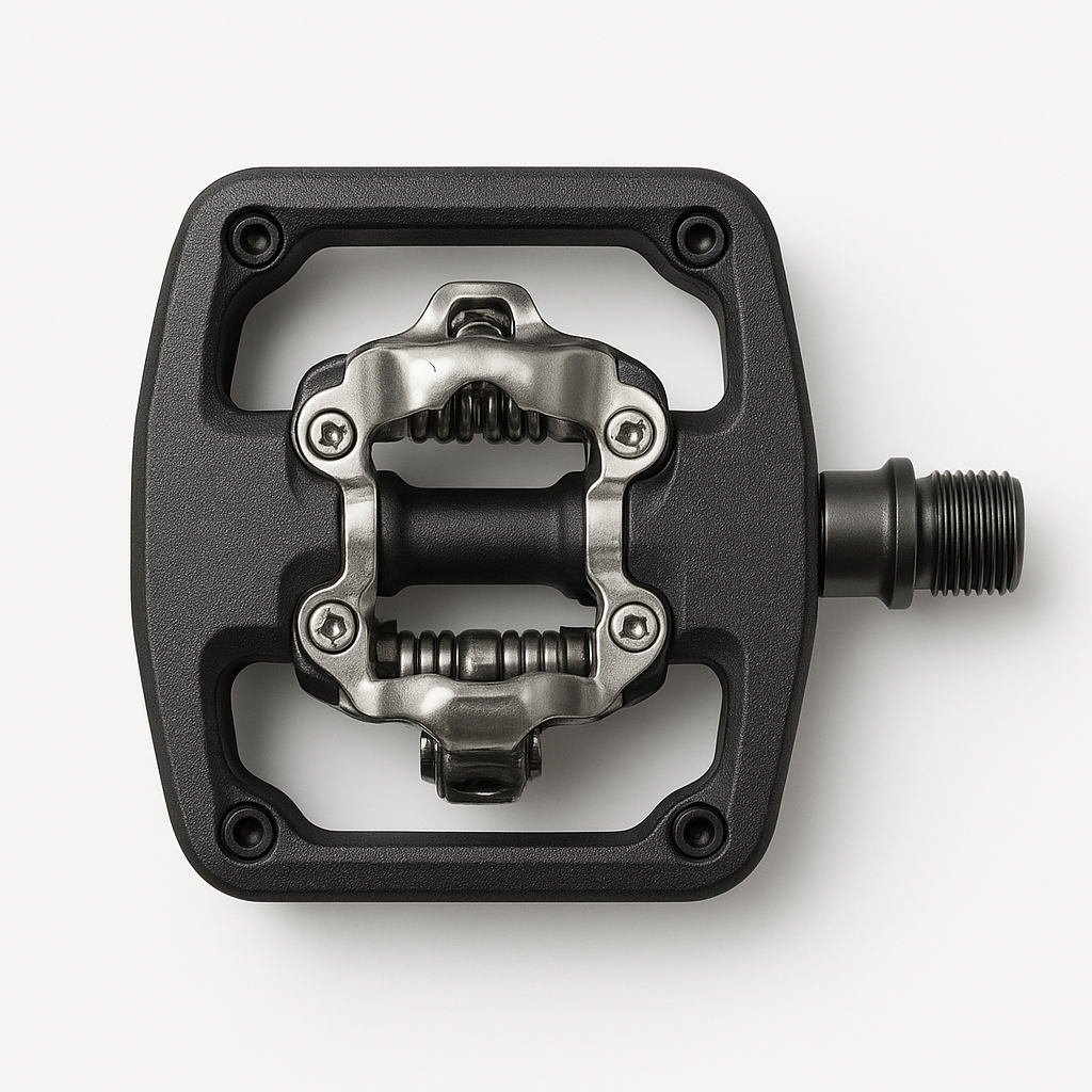 このペダルは、靴のソールとペダルのクリップが連動する仕組みで、回転中の足のブレを抑え、踏み込みと引き上げの両方で推進力を伝えやすくします。脱着は特定の動作で行いますが、慣れが必要です。調整可能なクリップの開閉幅や角度設定、靴のソール適合性など、モデルにより仕様が異なります。