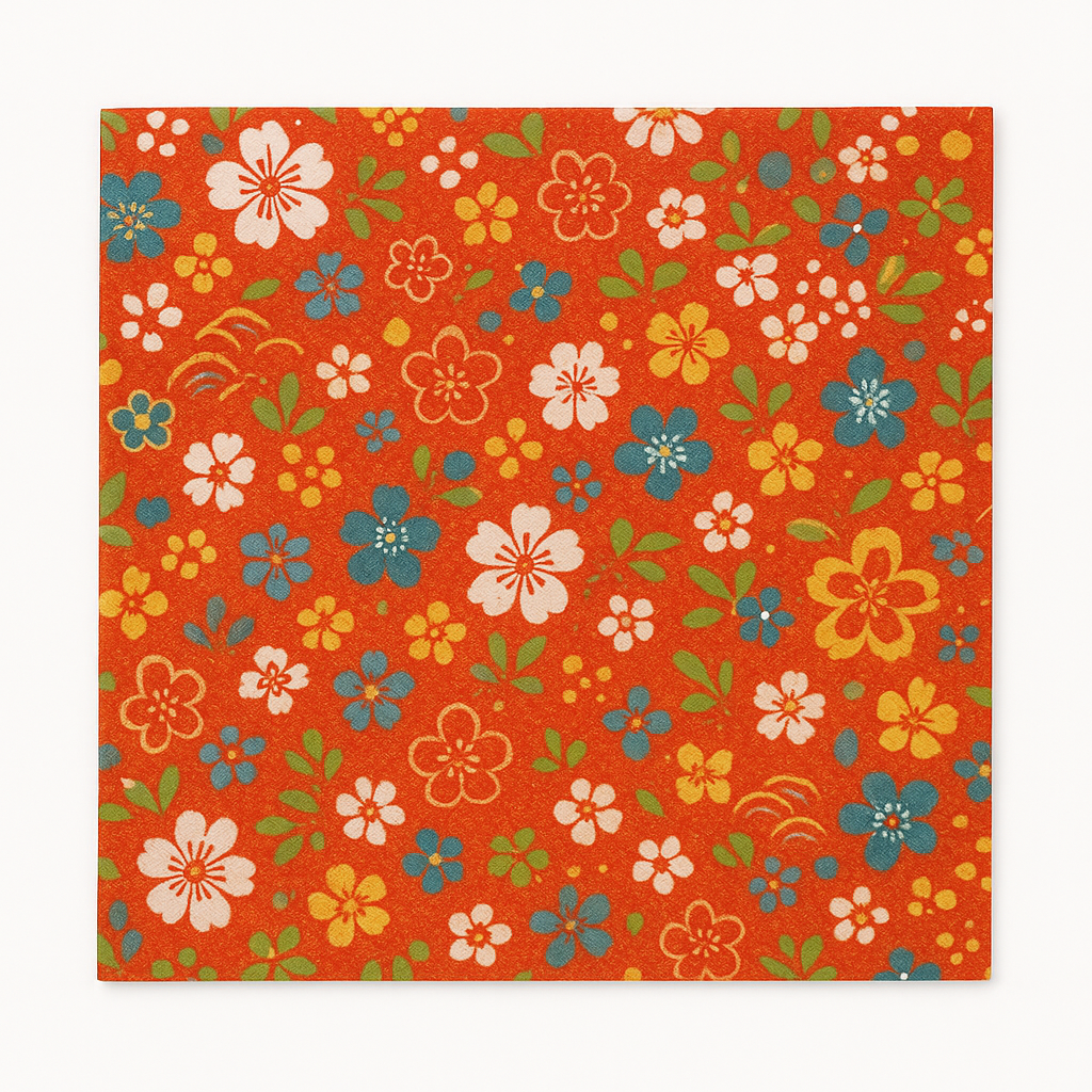 千代紙(ちよがみ)とは、柄や色が印刷・染色された装飾用の和紙の一種で、紙面全体に美しい模様が施された紙材です。古くから日本の伝統的な紙細工に用いられ、手芸や工作の素材として親しまれています。