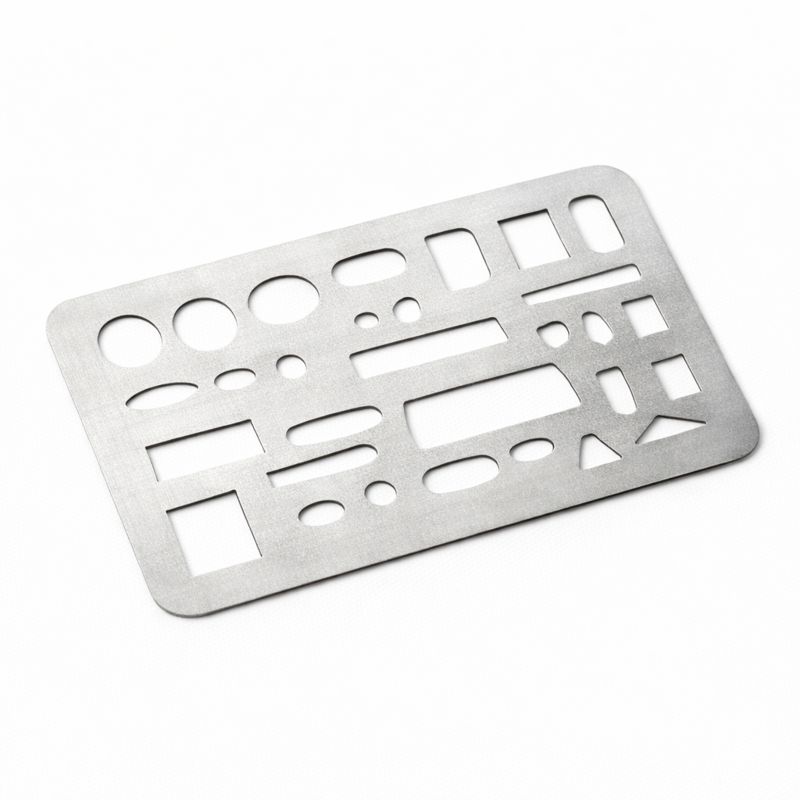 一般的にステンレスなどの薄い金属製のシート状で、テンプレートのように色々な形の穴が空いています。消したいものの形状や大きさに合わせて様々な穴が空いており、曲線にそって消すなどもできます。